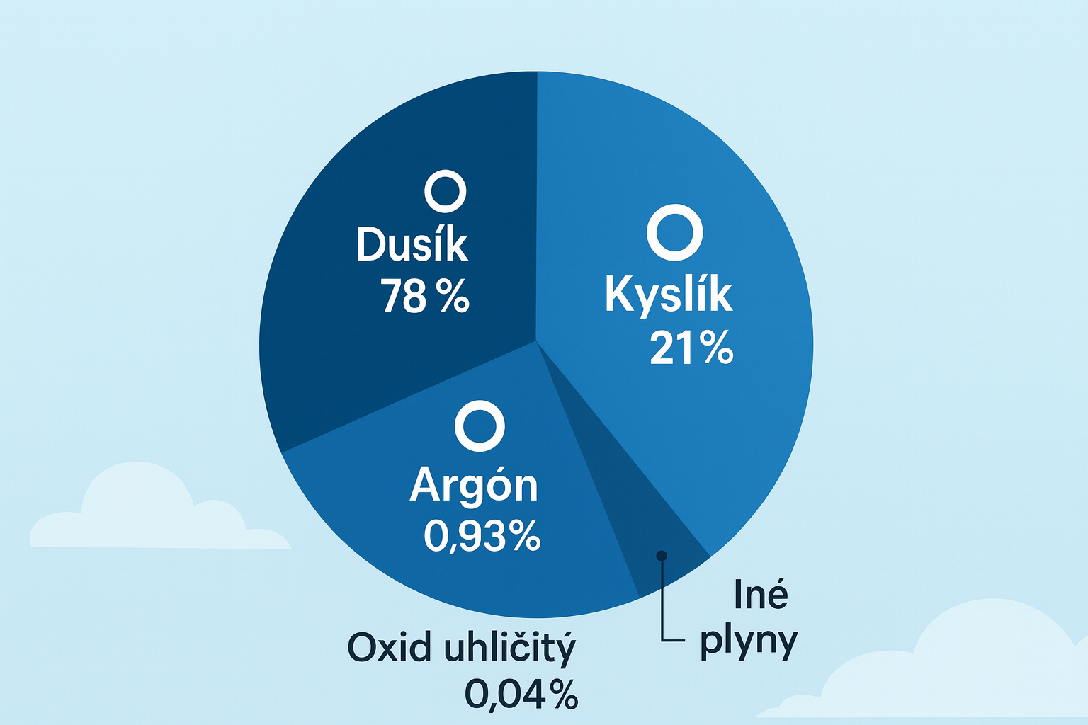 Do zvyšku vzduchu patrí len asi 1 % iných plynov. Medzi tieto plyny patrí najmä argón – inertná látka, ktorá tvorí približne 0,93 % z celkového zloženia. Malé množstvo oxidu uhličitého, približne 0,04 %, je tiež prítomné vo vzduchu, no jeho úloha je nesmierne dôležitá. Oxid uhličitý zabezpečuje udržiavanie tepelného režimu Zeme a je hlavným hráčom v procese skleníkového efektu, ktorý ovplyvňuje globálne otepľovanie.