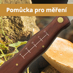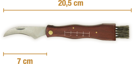 Praktické funkce: Nůž je vybaven zasouvací čepelí, která se dá snadno a bezpečně otevřít a zavřít. Součástí nože je také metr na měření délky hub a kartáček na jejich čištění.