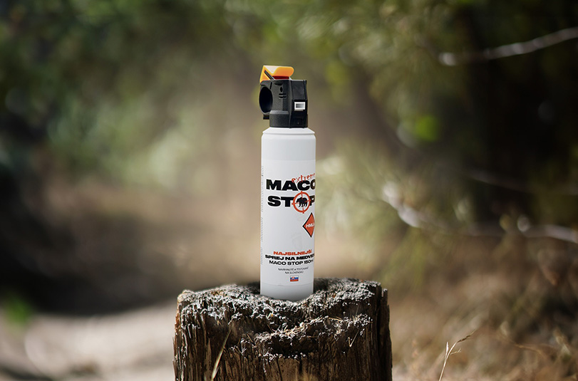 Obranný sprej proti medveďom MACO STOP Extreme slúži na ochranu turistov ale aj lesníkov, poľovníkov a kohokoľvek, kto sa pohybuje v lese, aby odrazili útok medveďa, alebo inej veľkej šelmy v prírode. Produkt je extrémne účinný nakoľko obsahuje kombináciu silných látok Capsicum oleoresin OC (kapsaicín) až 10% a MC 1,4% čo je najviac na trhu. Tieto látky zabezpečia okamžité paralyzovanie a veľké pálenie v oblasti dýchacích ciest, hlavy a očí s efektom rozostrenia videnia. Obranný sprej proti medveďom MACO STOP má účinný dosah až 8-9m. Doba vystreknutia obsahu je 3-5s. Tento sprej slúži ako účinná ochrana. Pri použití odporúčame dávkovať sprej viacero menšími dávkami.